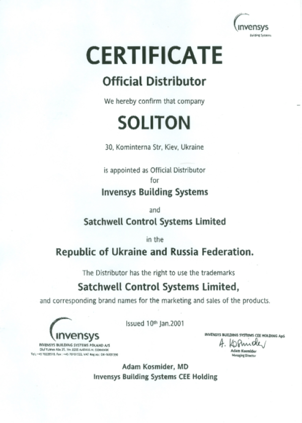 Підприємство ТОВ «СОЛІТОН» створене в 1993 році в м.Києві випускниками кафедри приладів і систем орієнтації та навігації Київського політехнічного інституту, які мали досвід розробки та випробувань приладів і систем в НДІ ПМ "РИТМ" КПІ та на заводі автоматики ім.Петровського.