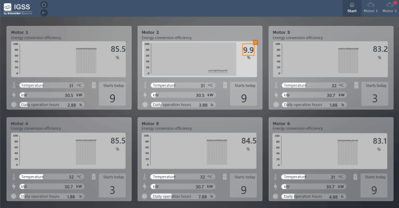 Для забезпечення оптимальної гнучкості та огляду, пакет IGSS підтримує до 9 моніторів для будь-якої системи або конфігурації IGSS. Таким чином, диспетчерський персонал отримує зручний огляд процесу, різні мнемосхеми якого зазвичай розподіляються на різні монітори для створення більш логічного та більш організованого вигляду технологічних процесів.